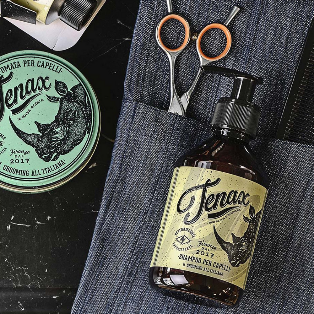 Tenax is a full line of products caring for your hairstyle and keeping your hair in line. Three pomades ensuring firm hold and absolute softness, one hair cream for maximum shine, one hair gel for firm and structured hairstyles, and a regenerating menthol shampoo. From the makers of Proraso, Tenax builds upon decades of barbering heritage with a range of premium hair styling products.